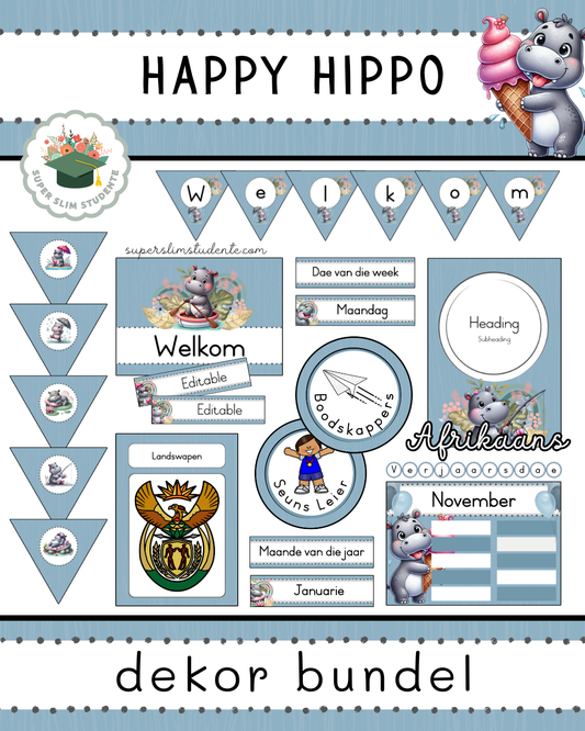 Happy Hippo Theme / Decor Bundle [Choose Language]