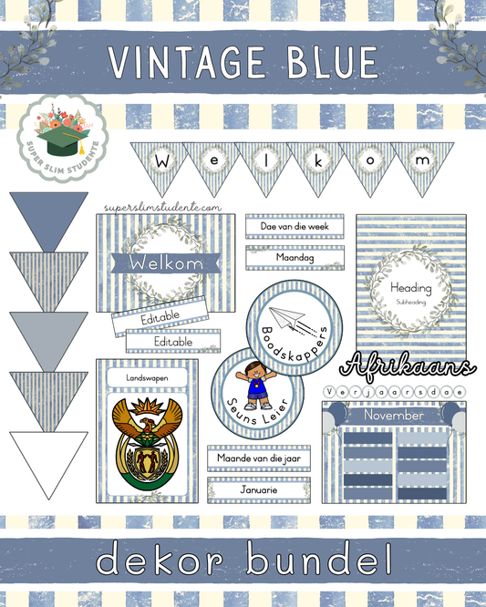 Vintage Blue Theme / Decor Bundle [Choose Language]
